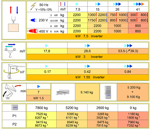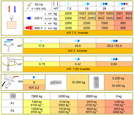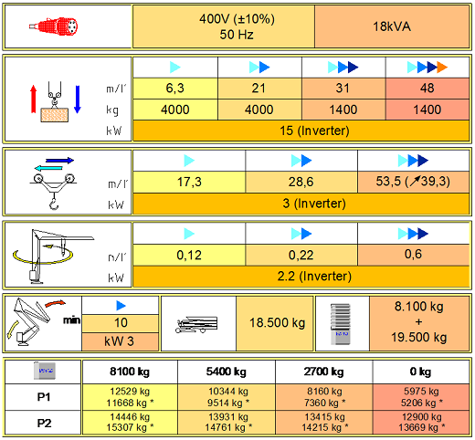 Datenblätter der relevantesten Krane